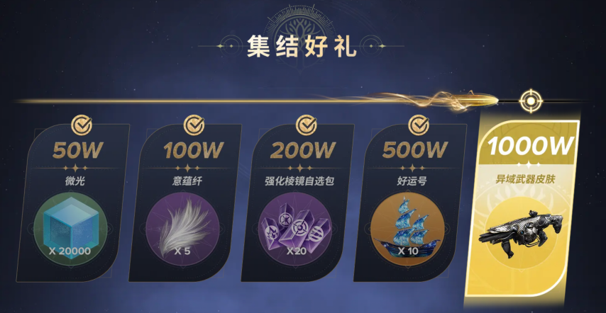 预约活动正热闹开展,随着预约玩家数量的增长,活动奖励会逐步解锁,当前预约人数已超800万!各位负光者在游戏正式上线时能得到10次免费抽奖机会。