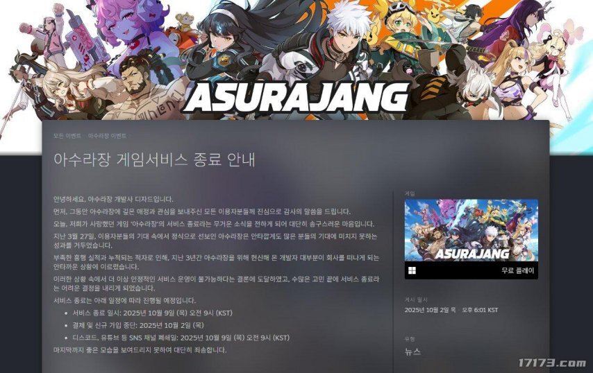 近日,韩国游戏《美少女梦工场:预言之子》开发团队全体成员离职,受此影响,开发商D-Zard旗下的另一款游戏《修罗场》(ASURAJANG)计划于10月9日停止运营。