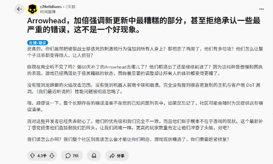 《绝地潜兵2》自去年年初推出后便备受玩家瞩目,其优质的内容设计收获了大量赞誉。不过,相比之下,游戏在优化和策划方面的表现却多次引发玩家的不满。