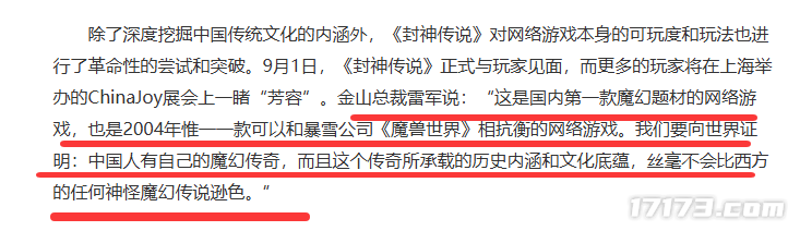 与此同时,雷军也是对自家游戏寄予厚望,并表示这是2004年唯一能和《魔兽世界》抗衡的游戏。