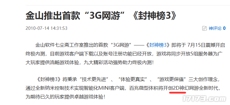 2010年4月29日,《封神榜3》首次对外封测,三个月后,开启了终极内测。