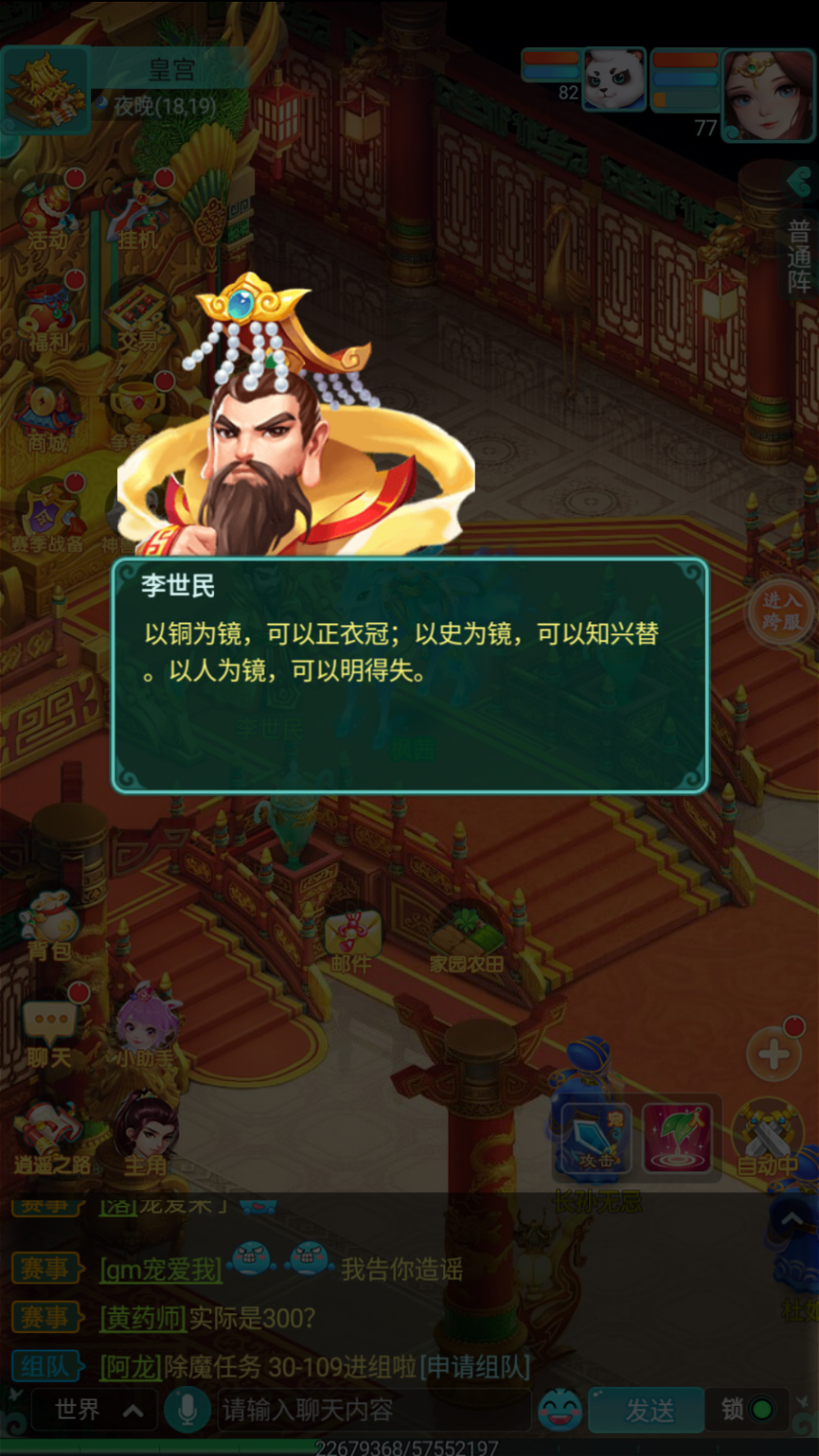 身为国舅的长孙无忌地位同样尊崇,他的妹妹正是历史上声名远扬的长孙皇后。除此之外,你还能在殿内见到杜如晦、房玄龄等名垂青史的旷世名臣。到逍遥世界的皇宫走一趟,会让你对那段辉煌的历史有更为生动直观的认识。