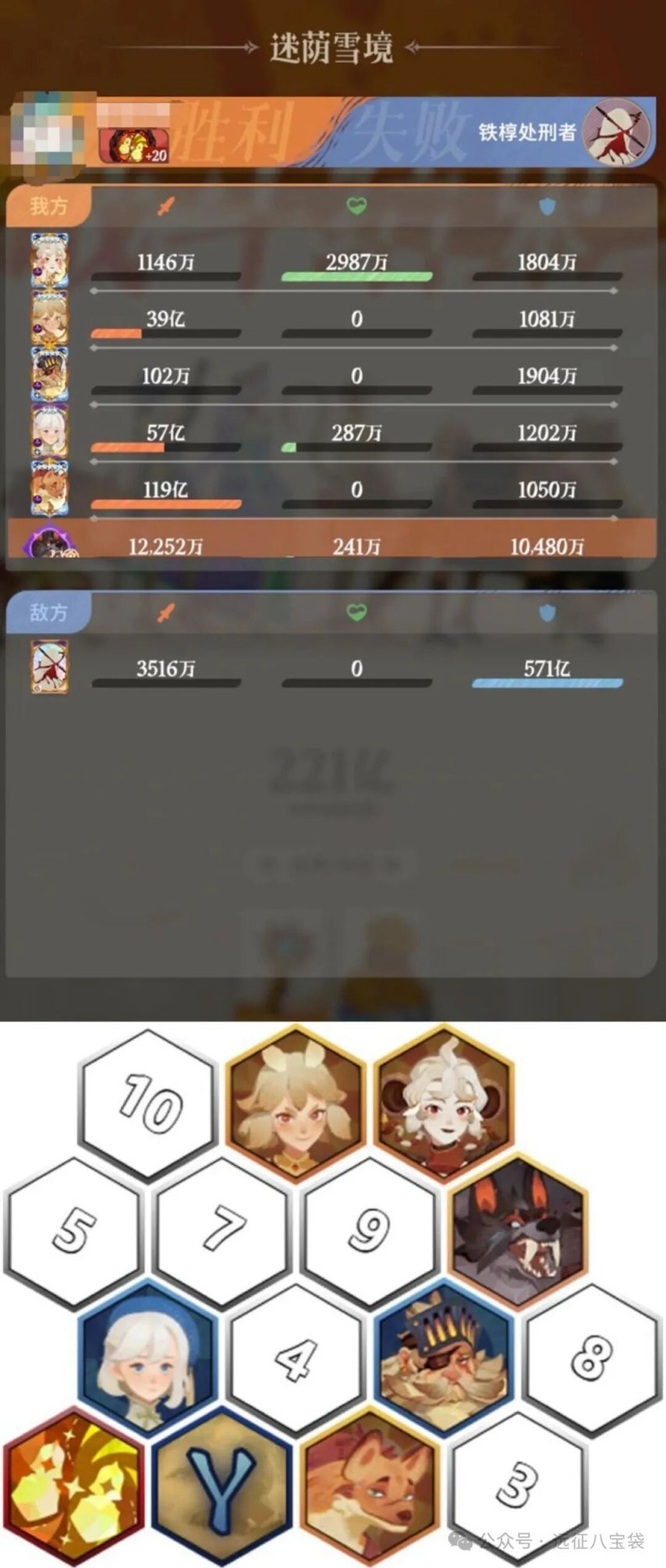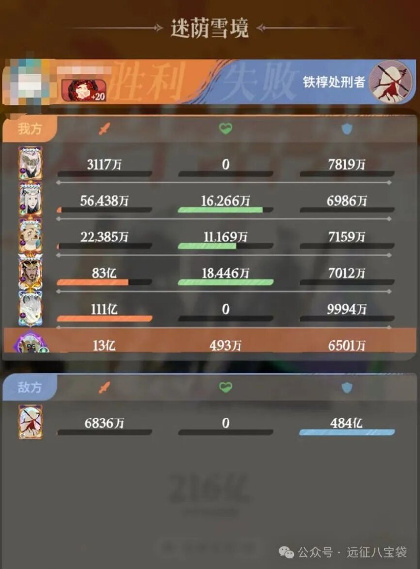 和上面情况相同,由于配置了增加终结效果的配饰技能,这支队伍在BOSS血量低于50%时,输出上限会更高。需要注意的是,如果水法没有专武,可以用光弓平替;穿山甲不需要特意培养练度,它的作用只是凑种族加成和叠加buff⭐。白狼剑神队中的铁椁无法减免真实伤害和流血伤害,所以真伤、流血类英雄可以作为输出主力,这支队伍能打出216亿的伤害。