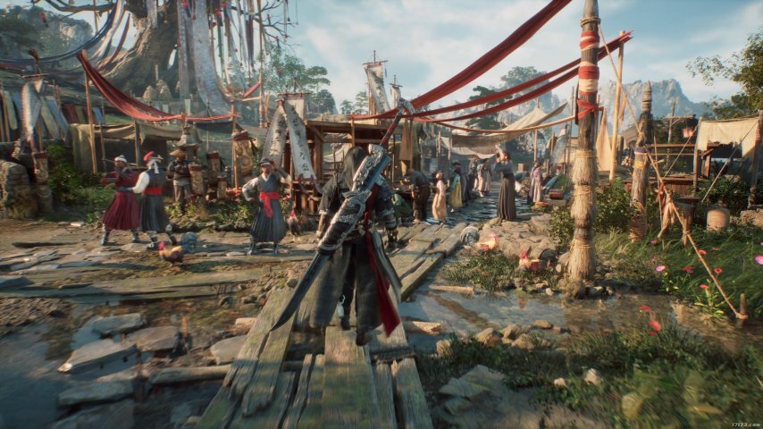视频的开篇,是深山里一位疑似巫师的击掌法师正在进行祭祀仪式的场景。在他面前,矗立着一块被禁绳缠绕的巨型石碑,他那仿佛即将解除封印的姿态,给人留下了深刻的印象。紧接着,画面切换到了可操作的角色部分——最先登场的是武士、少女和猎人组成的三人小队。从游戏宣传的单机玩法,以及视频全程都围绕武士展开的特点来推测,玩家所操控的角色应该是那位长发武士。