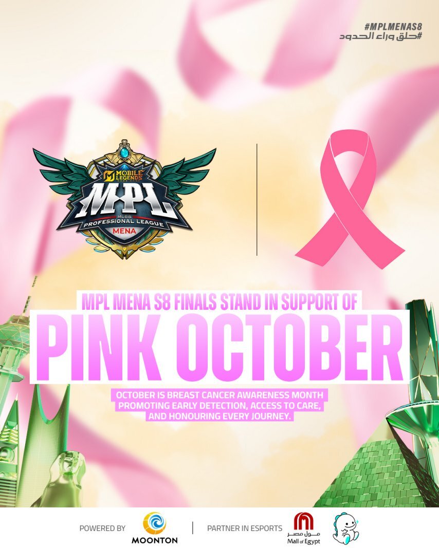 在赛事开展期间,MPL MENA赛区也在积极履行社会责任。十月是乳腺癌防治宣传月,为响应“粉红十月”公益活动,本次总决赛的全体主持人在比赛全程,包括现场环节与直播过程中,都佩戴了粉红丝带。这一行动与世界卫生组织及奥林匹克倡导的身心健康理念相呼应,既彰显了MPL MENA赛区对企业社会责任的坚定担当,也进一步在电竞社区及更广泛群体中传递了积极正面的引导力量。