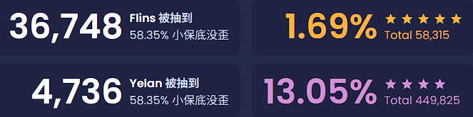 从paimon网站的祈愿数据能看到,这期抽卡的玩家里,选抽菲林斯的占了大多数。夜兰毕竟是几年前的副C,虽说强度依旧不低,可数值上还是比不过新角色;而且多数玩家肯定早就抽到夜兰了,所以她在本期卡池的抽取率相对低些也很正常。