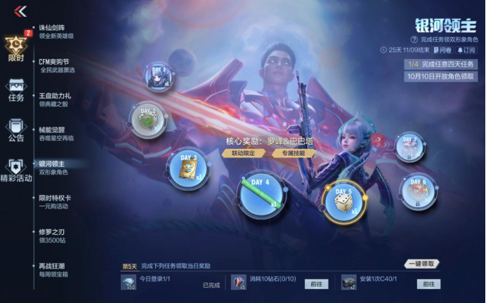 罗峰和巴巴塔也将返场,《吞噬星空》限定角色可免费获取!参与银河领主活动,只需从7日任务里任选4天完成,就能直接把罗峰和巴巴塔角色收入囊中!更值得一提的是,该角色还自带强力挑战技能:在挑战模式中能释放衍·幻剑式,向前发出9把剑刃,打怪效率直接拉满,颜值、情怀、实力全在线!