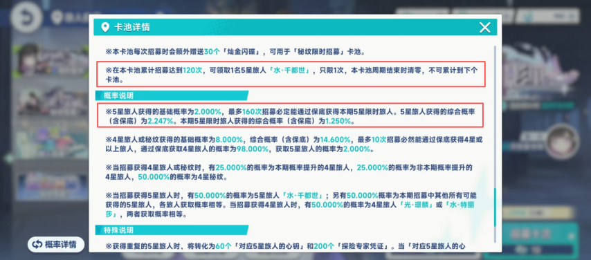 首先玩家们留意到的是这款游戏定价不低,游戏养成系统采用“米家三件套”,不过卡池机制里当期up角色是120抽可“井”兑换,而五星保底则需要160抽——你问为啥五星保底比角色井的抽数还高?小编也摸不着头脑(开玩笑的)