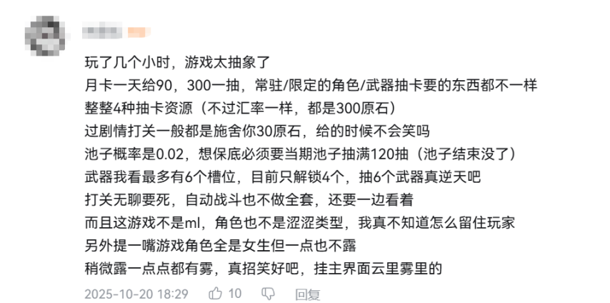再加上《星塔旅人》的开发商悠星,此前在代理其他游戏时,曾因部分运营策略引发玩家大规模不满,这使得二游玩家对悠星开发的游戏天然好感度偏低,不少人因此对这款游戏表现出“攻击性”。