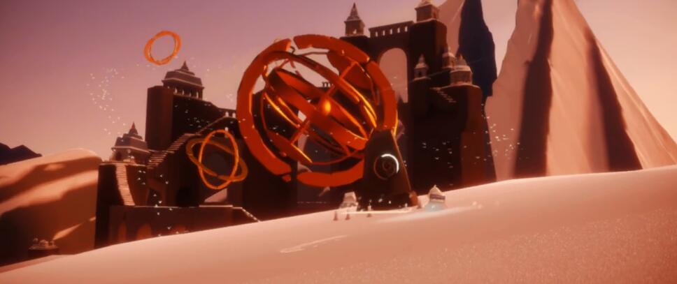 2、进入飞行场后,玩家会注意到场景里有不少像不停旋转的地球仪一般的道具,这里正是玩家需要踏入的入口!