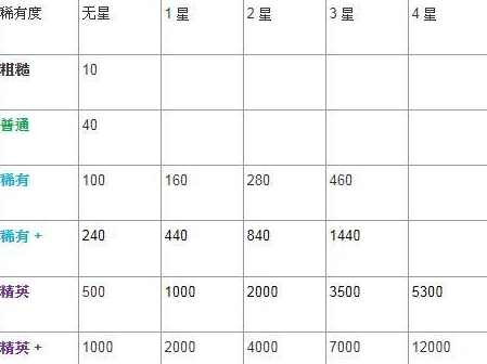 下表为各罕见度与加强级别,各自用于看成素材所能奉献的加强值