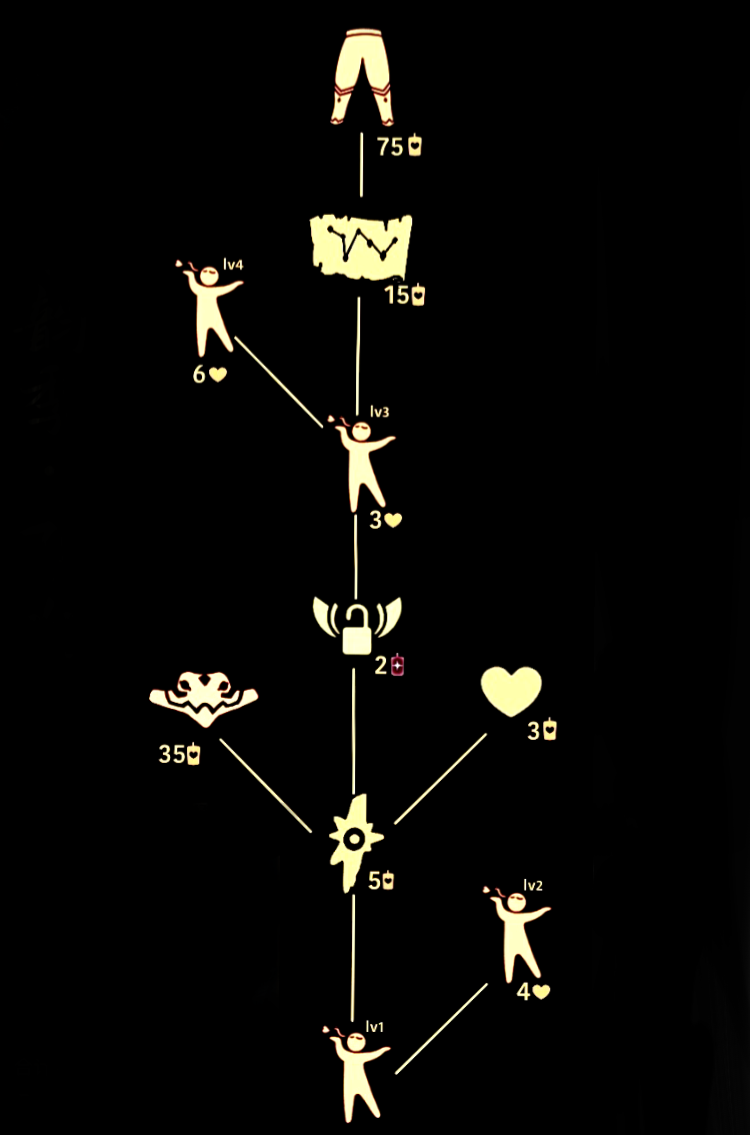 可以看到,兑换裤子需要七十五根白蜡烛,面具则需要三十五根白蜡烛。另外,这位先祖还能兑换飞吻动作,其中二级动作要消耗四颗爱心,三级动作需要三颗爱心,四级动作则需要六颗爱心。