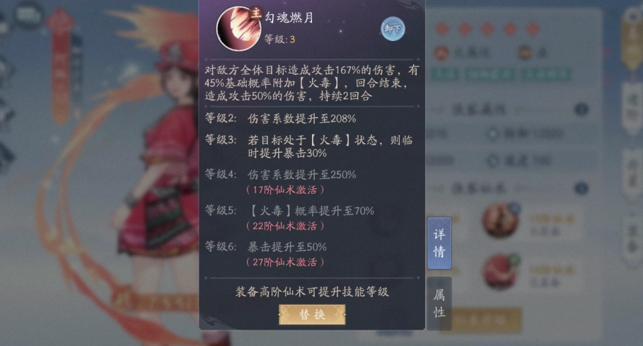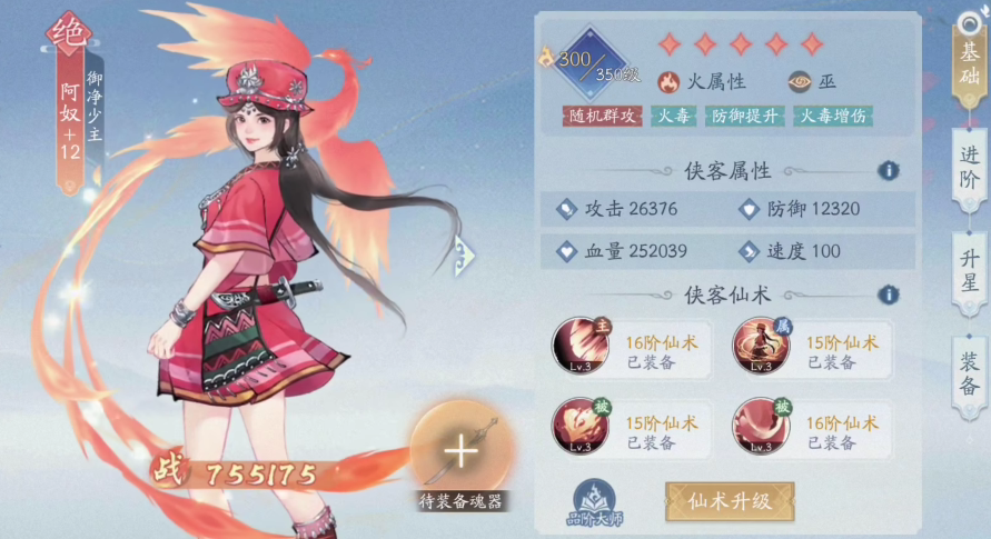 火属性阿奴的主动技能作用范围覆盖目标方所有敌人,同时附带被动火毒攻击,并有一定概率随机重伤一名敌人。火毒是阿奴核心的伤害来源,既能有效为队友创造输出空间,又能持续给敌人施加负面状态;该火毒效果还会使中招目标的防御力与治疗量下降。基于这一特性,这里给大家推荐的加点思路是重点强化火阿奴的减伤与速度属性,这样能更好地发挥其优势。
