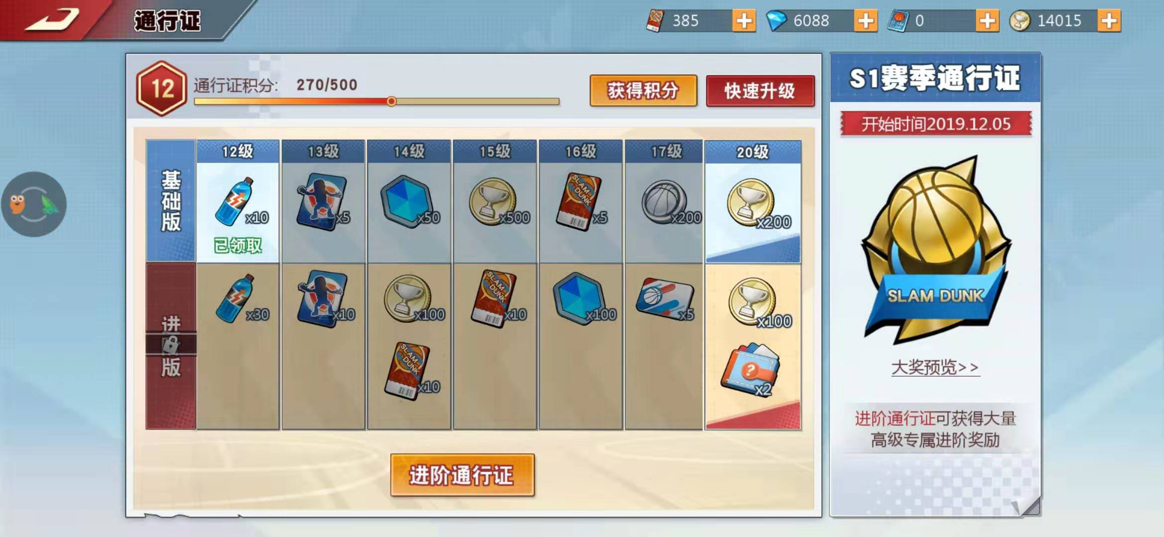 通行任务同样是必须完成的,只要灌篮、篮板、抢断、三分等技能的使用次数达到一定标准,就能领取相应奖励。