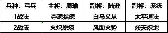 庞统作为高输出、龟速且具备强力辅佐增伤能力的将领,往往需要搭配黄忠、周瑜、陆逊这类能打出高输出的弓兵将领;而弓兵适用的白马义从,无论是提供先攻效果还是提升10%自动战法发动率,都能让庞统的作战表现得到增强。