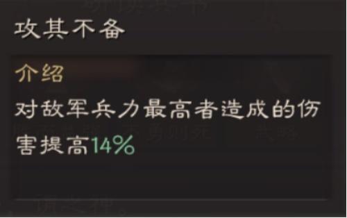 最新赛季,兵法系统的对外开放,促使兵法系统也变成将领实力评判的关键目标,庞统兵法大技为:后发先至,以治击乱和趁火打劫3个战法。