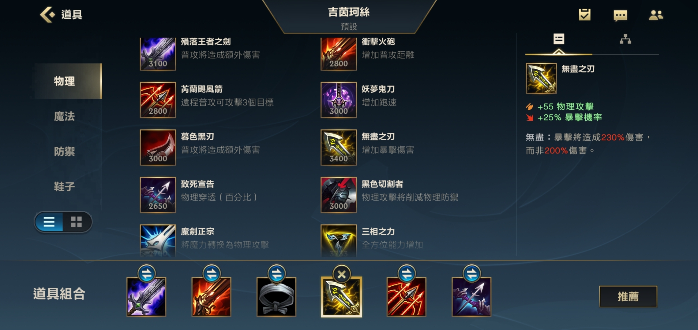第四件装备选择无尽即可,无尽是金克丝的核心装备,出了这件装备能显著增强金克丝的输出能力,帮助她更快触发被动效果。