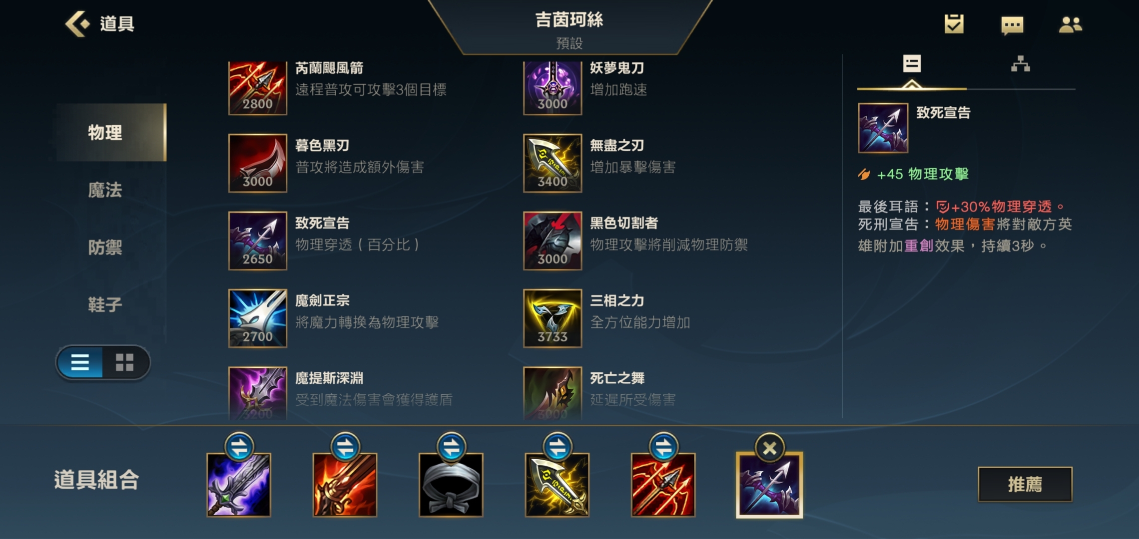 要是对面阵容里坦克英雄占比高,咱们就选择穿甲弓这件装备来保证输出,不然打在肉身上的伤害会跟刮痧似的没什么效果;要是对面没什么肉坦英雄,那咱们就可以出死亡之舞,这样既能提升吸血续航能力,又能增强抗伤的生存能力。