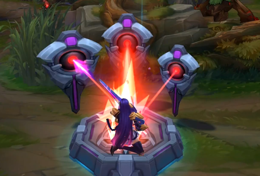 W的技能是在脚底下有个紫色隐魔法阵,而E技能也带有浓浓的热血漫画风。