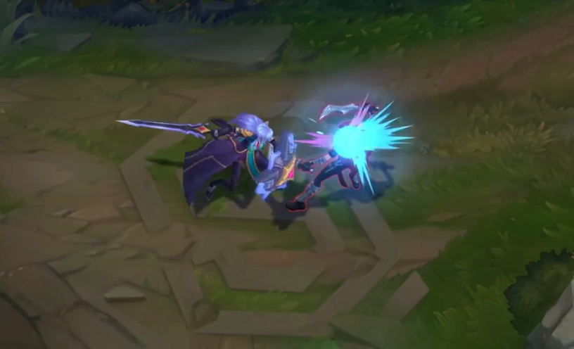盖伦普通攻击的特效呈现出十分鲜明的漫画风格打击效果,其打击感也相当带劲。