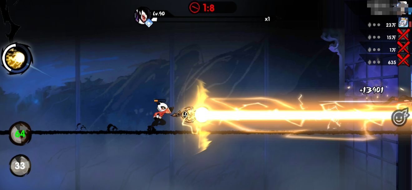 3、要是对面熟悉熊猫的玩法套路,那这时候大招就别轻易交了,很容易被直接封住。对战时可以用一文字搭配疾风步,用来对付第一个BOSS,第二个BOSS则用技能来应对。