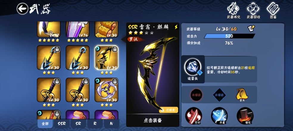 1、小编推荐阿力的首选宝物是“雷弓”,它的雷系加血效果相当可观,这也是目前多数玩家的选择,毕竟生存才是重中之重。