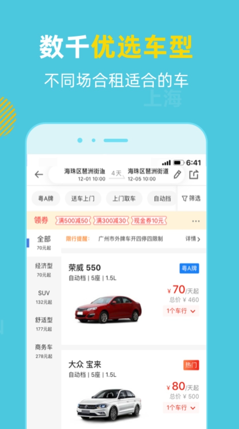 租租车的国内租车服务价格实惠公道,在很多城市都开设了门店,重新诠释国内租车体验,为用户提供优质服务,新用户更能享受专属优惠,助力各位小伙伴开启美好的自驾游之旅。