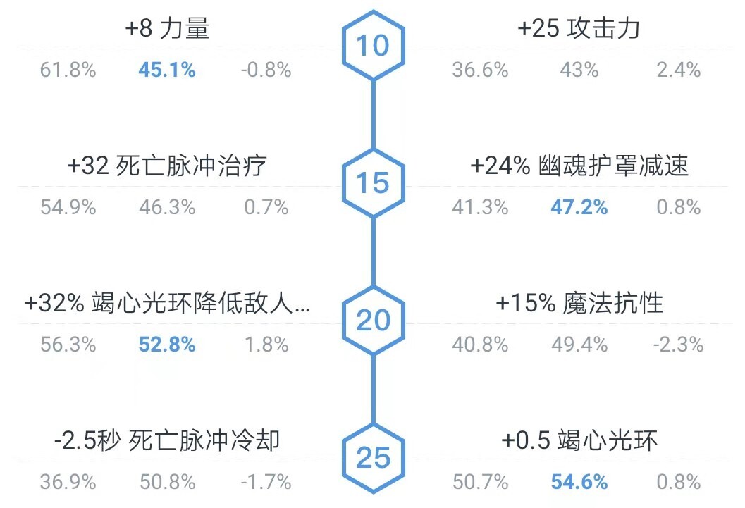 再聊聊对线思路和技能加点的问题:NEC正常对线时本身就该占据优势,优势局的核心就是“折磨”对手——走位可以更激进些,补远程兵时用D技能顺便消耗对方,平时也多普攻骚扰;靠着被动的回血效果,一边磨对手血量一边维持自身状态,就能在补给上拉开差距。同时要和己方4号位配合,利用前期D技能不错的回复能力保护4号位,重点压制对方的1、5号位,推线压人是常用打法,再让4号位去拉野消兵,逼着对手买大量补给,直到他们撑不住只能去打野。如果是劣势对线,得看具体情况:要是4号位能勾兵,就直接勾兵强行混线求“互肥”,只要熬到6级,等队友游走配合一套技能斩杀对手,前期受的压制就能打回来;要是没法勾兵成了“孤儿局”,就去树林里蹭经验,保证不死,到6级还有翻身机会。加点方面,1级学D、2级学光环,3-5级可以灵活调整,常规推荐是2级D、1级罩子、2级光环,之后优先点大招,D和光环交替点满就行。天赋选+8力量、罩子减速、减少敌方回复、光环+0.5——这里重点说罩子减速,这是NEC的核心天赋之一,能把罩子24%的减速提升到48%,后期进场相当于自带团控,效果特别明显;另一边的+32治疗效果相对普通,没法带来质的改变。