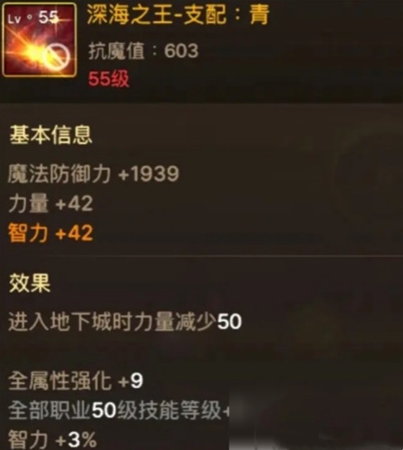 【深海之王-支配:青】是件相当均衡的装备,尽管进地下城会少50点力量,但阿修罗属于魔法输出职业,这点力量的影响基本可以忽略。反而它提供的全属性强化+9和50级技能+1的增益,能让阿修罗的输出更上一层楼。手镯方面,阿修罗建议选【深海之王-痛苦:青】。这个手镯的效果直白又强力,直接加10%的智力。大家都清楚智力对阿修罗的重要性,智力越高输出就越猛。这10%的智力加成会直接显示在技能面板上,简直是给输出能力加了个大buff。不管是刷图清小怪,还是对抗高防御的BOSS,这个手镯都能让阿修罗的伤害提升一个档次。