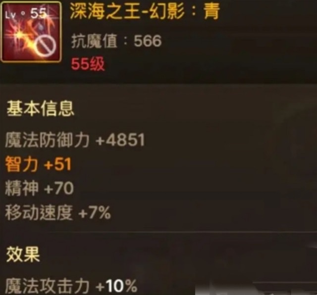 最后要推荐的是项链【深海之王-幻影:青】。既然手镯主打智力加成,那项链自然要选能提升魔法攻击力的。这款项链的效果同样直接给力,能为角色增加10%的魔法攻击。对于阿修罗而言,他的所有输出技能都受魔攻影响,所以这10%的加成提升相当显著。特别是在对抗高血量敌人时,魔攻的提升能让输出更具爆发力,技能释放后怪物的血条会快速下降,视觉效果和战斗体验都十分爽快。