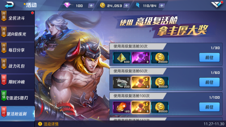 这年头给英雄使用复活功能也能拿到奖品!使用高级复活舱达到一定次数就能收获不少意想不到的奖励呢。还有一个我觉得特别实用又简单的活动——每天点击分享就能得到金币和力量。