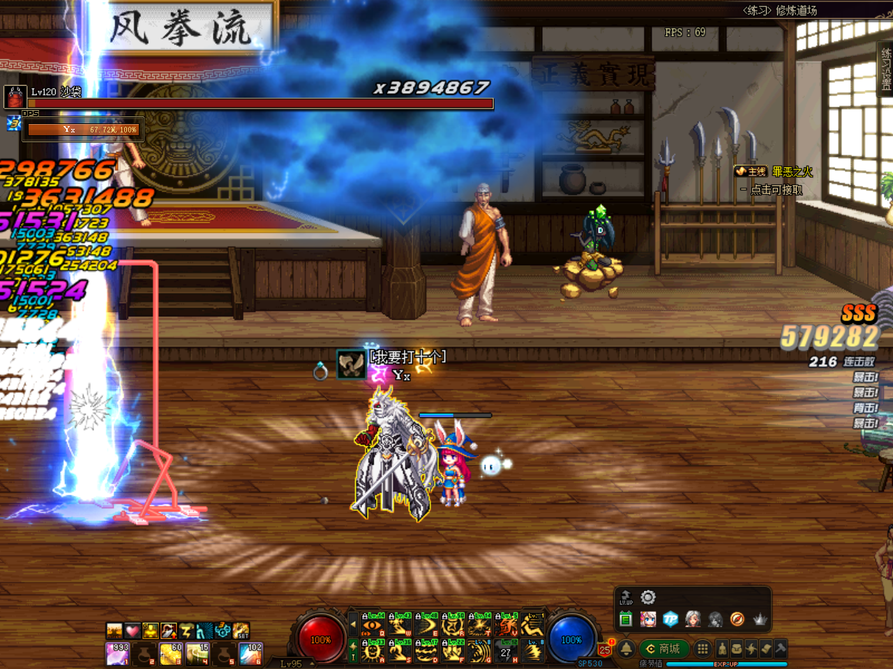 阿修罗虽以续航能力著称,但并非缺乏爆发手段——其二次觉醒便是典型的高爆发技能,雷云技能可与二觉搭配进一步提升爆发伤害,此外还有一个拍地板的电光技能,被玩家亲切称为“啊呀呀”。常见的爆发连招为:先释放二觉,随后移动至二觉技能的中心区域,再次按下雷云技能将其释放,最后衔接“啊呀呀”;通过多重光属性技能的叠加,能够打出极高的伤害,这套连招多用于BOSS战前夕的全力输出阶段,也是打桩测试伤害时常用的组合。
