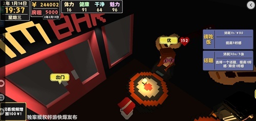 答:若想找个女朋友,得先增进和女生之间的好感,之后还得把住处升级一下,换租一套大点的公寓,这样才能方便带女朋友回家。