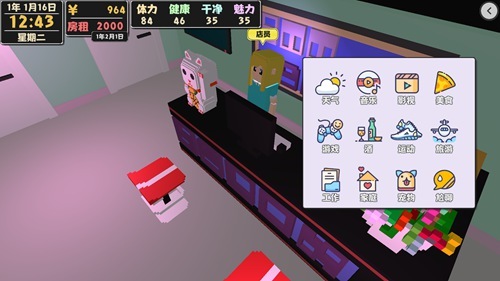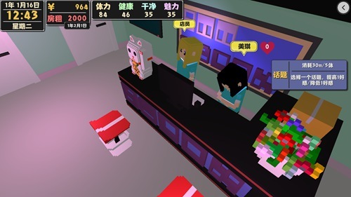 第一个是在美容院工作的美琪,周一到周五上午10点前后,她会去公园锻炼,其余时间大多待在美容院里。走进美容院后,能看到前台有两位姑娘,只要一直点击右边那位姑娘,就能显示出她的名字,我们还能看到名字旁边的爱心图标。