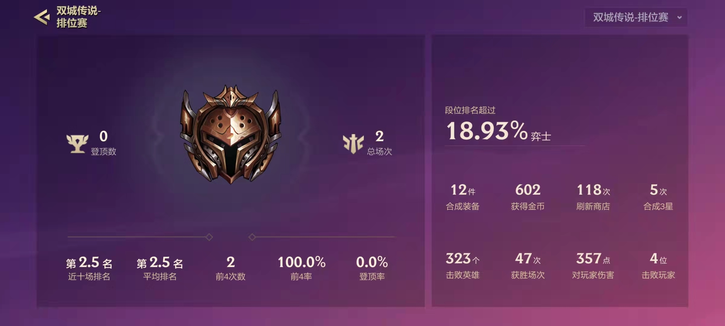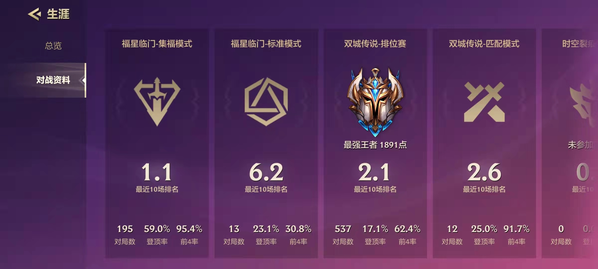 在S6.5赛季中,排位赛的前五局被认定为定级赛。在这五场定级赛里,若玩家拿到最后四名,不会扣除任何分数;要是取得前四名,除正常加分外,还能获得额外的分数加成。并且,这个额外分数加成以及首场定位赛的起始段位都有所不同——玩家上赛季的段位越高,起始段位就越高,定位赛能拿到的额外加分也越多。因此,即便上赛季是大师段位的玩家也无需担忧,只要打好前五局定位赛,基本能处于钻石到铂金1左右的分段,再冲击大师段位会很快。