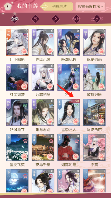首先要说明的是因缘力的来源。由于游戏里进行结缘抽卡时一定会抽到部分重复的卡片,这些重复卡片会被系统自动转化为因缘力,而且因缘力的来源仅这一种途径。打开游戏后进入结缘界面,通过“我的卡片”选项就能查看详细的因缘力信息。