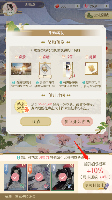 游历的结算周期为10到20分钟一次,因此长时间挂机时因缘力的消耗速度会比较快。虽然结算时获得奇物的概率会有所提升,但这并不意味着奇物数量能大幅增加。所以更建议大家不要一次性用完因缘力卡片,分多次使用会更合理一些。