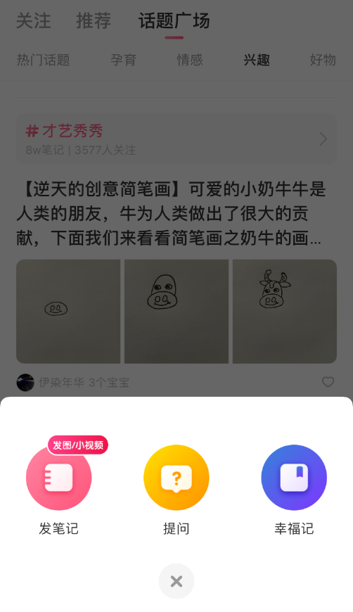 想要参与话题讨论,可点击主菜单栏【+】—【发笔记】即可。