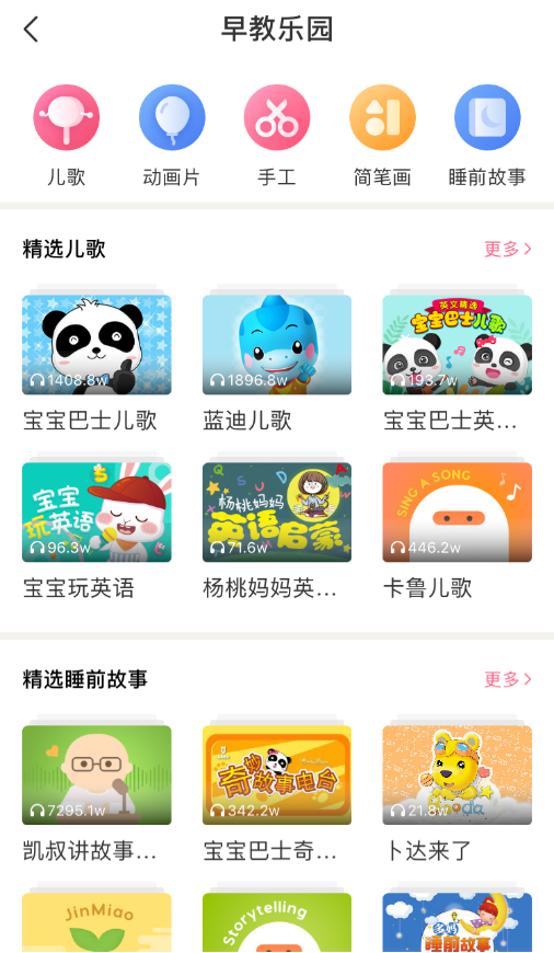 而二宝仅10个月,就显示【亲子听听】,更多是音频为主,让宝宝通过听达到亲子互动和学习。