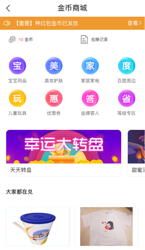 每天都能通过签到或者完成任务来获取金币,每完成一项任务,就能得到一次兑换现金的机会。金币也可以用来兑换礼品,点击主菜单栏里的【孕育】—【福利社】—【金币商城】就能进入兑换页面。