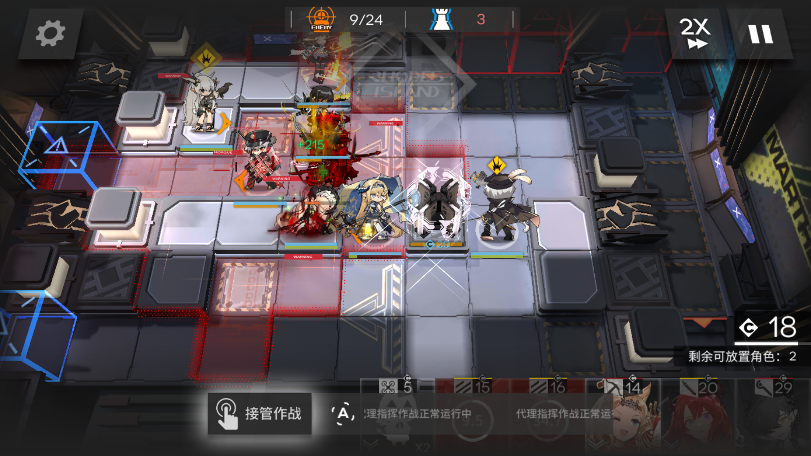 进入实战阶段后,血骑士会固定从地图右上角的红色传送门登场。第一阶段的血骑士防御力偏低,但魔抗较高,此时采用风笛搭配能天使的组合,借助过载模式就能一套将其击败。当血骑士进入复活阶段时,我们可以把物理输出干员切换为法术输出干员,这里推荐使用史尔特尔、塞雷娅与艾雅法拉组成的法蒸体系,实战效果十分明显。