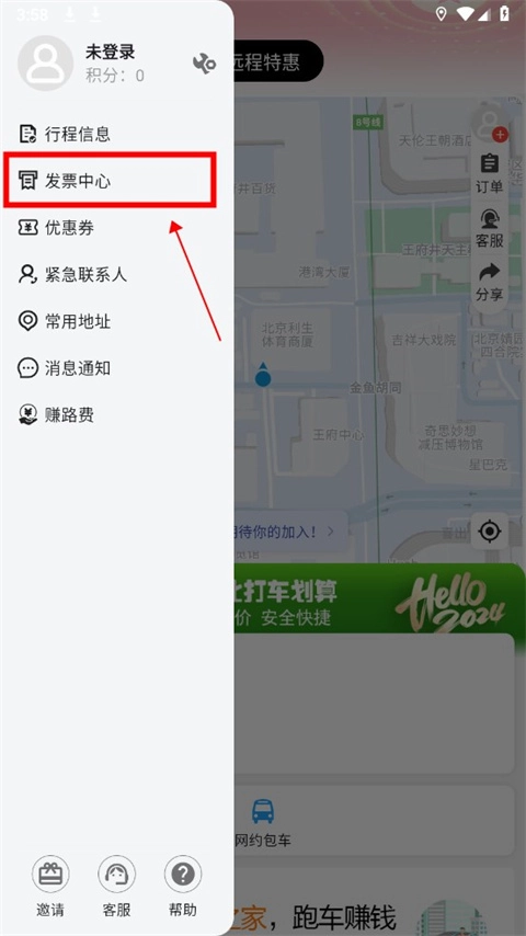 在个人中心中点击发票中心;