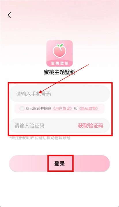 3、于登录页面输入您的手机号码,完成登录后,即可开启蜜桃主题壁纸手机版的使用之旅。