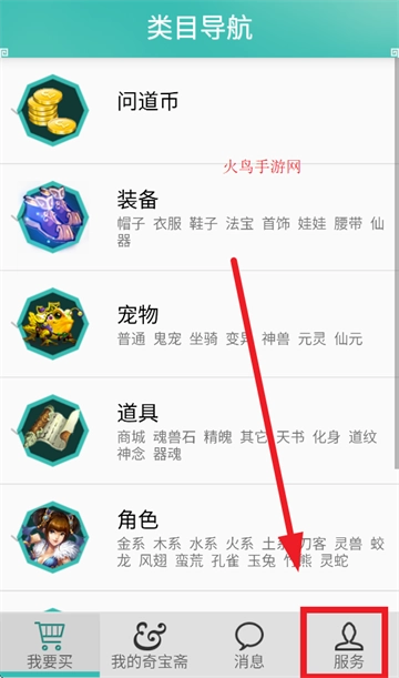 打开问道奇宝斋app,进入后点击服务