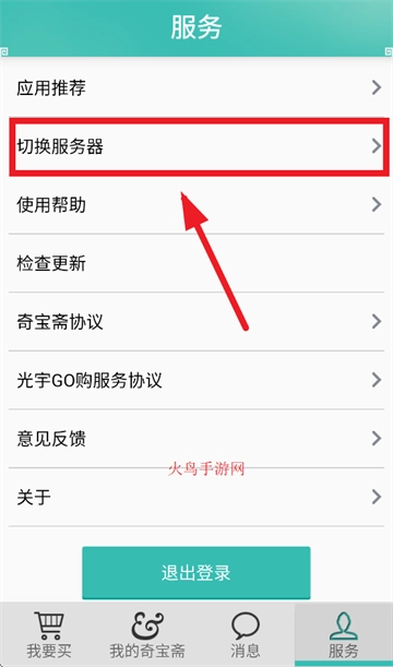 在服务界面选择切换服务器