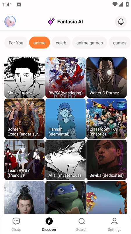 2、具备多样化的AI模型,广泛覆盖动漫、名人、游戏等诸多领域,能够契合用户各异的聊天喜好。