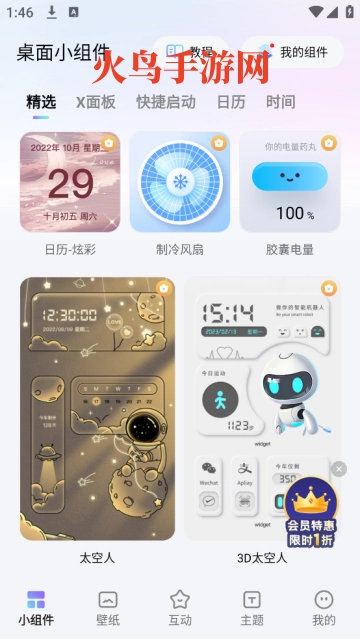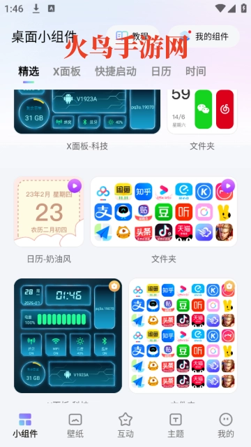 软件不仅支持设置多种样式的小组件,还提供静态壁纸、动态壁纸以及主题供用户下载。