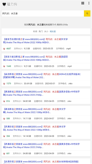 2. 多条件筛选:可依据文件大小、上传时间、种子数等条件,对结果进行精准过滤。