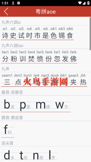 支持汉字查询,在软件的搜索栏输入汉字,查询相对应的粤语发音。