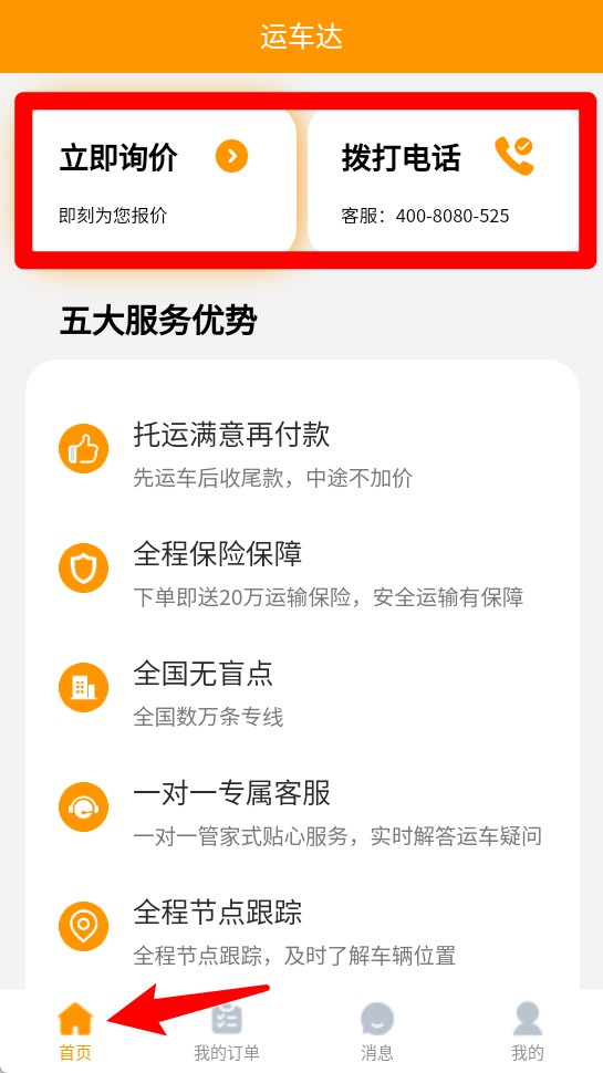 3、在首页上方,您可点击“立即询价”来获取即时报价,也能选择“拨打电话”联系官方客服,进行人工咨询。
